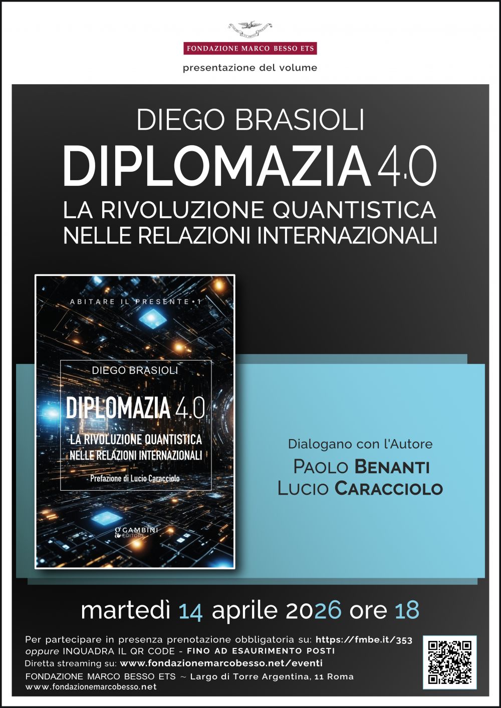 GD - Roma, 14 apr. 26 - La diplomazia nell’era quantistica: sfide e nuovi equilibri globali. Ad intervenire sulla complessa questione e sul delicato intreccio c'è il volume “Diplomazia 4.0. La rivoluzione quantistica nelle relazioni internazionali”, dell'amb. Diego Brasioli (Gambini Editore), che...