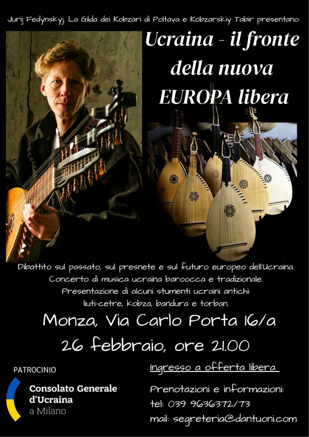 Ucraina: "Il fronte della nuova Europa libera”, dibattito e concerto a Monza