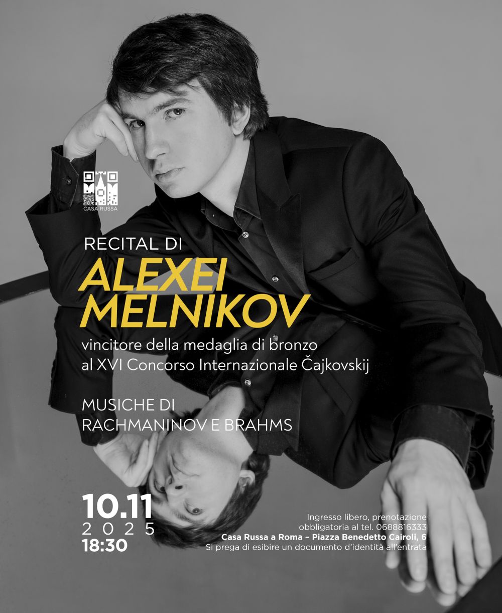 GD – Roma, 6 nov. 2 - Casa Russa di Roma ospita lunedì 10 novembre, alle ore 18:30, il recital del pianista Alexei Melnikov, uno dei rappresentanti più espressivi della scuola pianistica russa contemporanea, bronzo del XVI Concorso Internazionale Čajkovskij, del II Concorso Internazionale di Musi...