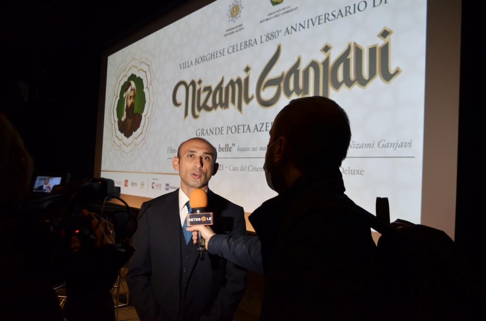 La giornata a Villa Borghese per celebrare l’anniversario di Nizami Ganjavi è iniziata con la visita dei rappresentanti della comunità azerbaigiana a Roma e degli amici italiani dell’Azerbaigian alla statua del poeta, ai cui piedi sono stati posti fiori. A seguire, nella Casa del Cinema di Villa Borghese, si è svolto un evento organizzato dall'Ambasciata dell'Azerbaigian in Italia, in collaborazione con la Fondazione Heydar Aliyev, nel quale sono intervenuti l'ambasciatore dell'Azerbaigian in Italia, Mammad Ahmadzada, l'editore Sandro Teti, a cui si deve la pubblicazione in Italia de "Il Grande Poeta Azerbaigiano Nizami Ganjavi" di Evgenij Bertels, e il turcologo e dottore in studi islamici Federico De Renzi.