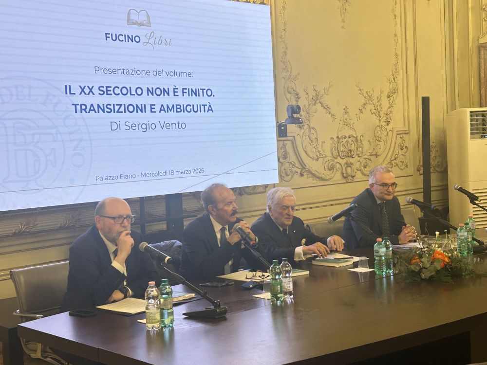 GD - Roma, 20 mar. 26 – La Banca del Fucino, il più antico istituto di credito privato di Roma, ha lanciato il progetto "Fucino Libri", una serie di appuntamenti periodici di approfondimento con autori e scrittori su temi di attualità, geopolitica e macroeconomia. Protagonista del primo incontro è stato il libro “Il XX secolo non è finito. Transizioni e Ambiguità”, scritto dal diplomatico ambasciatore Sergio Vento ed edito da Rubbettino. L'evento è stato introdotto da Mauro Masi, presidente dell'istituto di credito, che ha ricostruito i più recenti interventi della Banca del Fucino in campo culturale, dall'ingresso con un importante finanziamento nell'Opera di Roma durante il Covid, poi nel Bio-Parco e nell'Auditorium Parco della Musica.