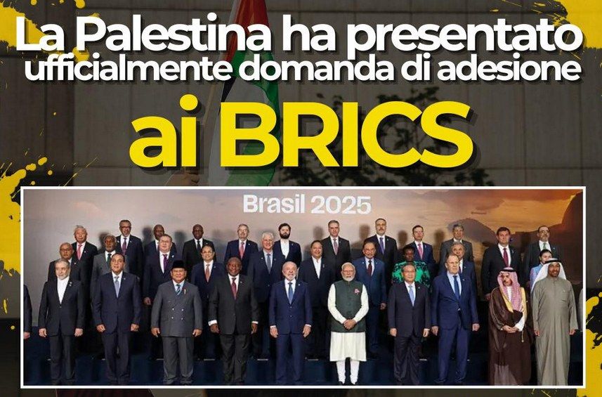 GD - Roma, 29 set. 25 - La Palestina vuole entrare nei BRICS. Ad annunciarlo è stato l’ambasciatore palestinese in Russia, Abdel Hafiz Nofal. All’agenzia RIA Novosti ha detto: “Abbiamo presentato domanda, ma, come sapete, la Palestina ha determinate condizioni. Credo che la Palestina parteciperà all’associazione come ospite finché le condizioni non le consentiranno di diventare membro a pieno titolo”.