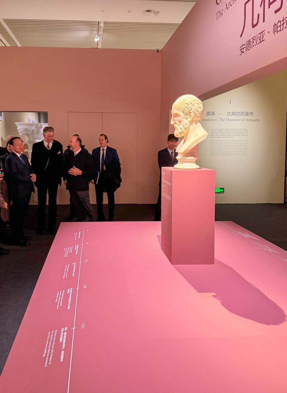 “Geometria, armonia e vita. L'architettura di Andrea Palladio dall'Antichità al Classicismo” (4 febbraio – 16 maggio 2026) presenta per la prima volta al pubblico asiatico un progetto unitario dedicato ad Andrea Palladio, raccontando la diffusione dell'architettura palladiana, in dialogo con l'architettura cinese. Con la curatela congiunta italiana – del Centro Internazionale di Studi Andrea Palladio – e cinese, è realizzata dall'Ambasciata d'Italia e dall'Istituto Italiano di Cultura di Pechino, in collaborazione con il Museo Nazionale della Cina, il Palladio Museum di Vicenza e Treccani.