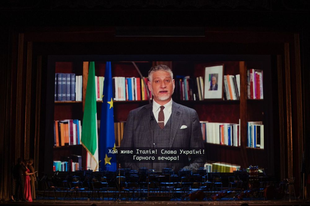 Come padrini della serata hanno parlato l'Ambasciatore italiano a Kyïv, Carlo Formosa, e il vice Ministro ucraino della Cultura e della Comunicazione Strategica, Galyna Grygorenko, introdotti dal Direttore Generale del Teatro dell'Opera, Nadya Babich. Sia il Direttore che l'ambasciatore hanno ringraziato l'impresario musicale Enrico Copedè (di Livorno ma residente in Ucraina), che è stato la mente e il motore del progetto musicale. Un breve intervento del Governatore regionale Oleg Kiper ha chiuso la serie dei saluti istituzionali.