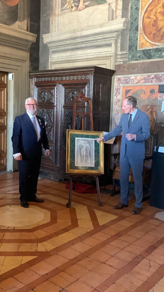 Il direttore Stroppolatini ha donato a Palazzo Farnese una litografia del 1700 che rappresenta Ercole, figura imprescindibile dal palazzo e il cui nome è legato il famoso Salone eponimo.