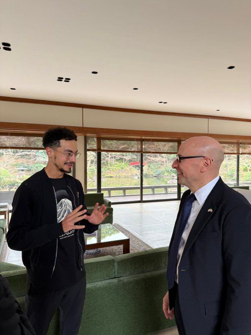 GD - Tokyo, 2 mar. 26 -L'Ambasciatore italiano in Giappone, Mario Andrea Vattani, ha accolto in residenza l'azzurro Ilias Aouani, già ai Mondiali 2025, per festeggiare lo storico primato italiano (42 km in 2h04'26 ) ottenuto alla Tokyo Marathon di domenica scorsa.