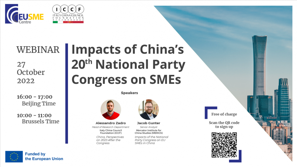 GD - Milano, 26 ott. 22 - L’Italy China Council Foundation continua a monitorare le ricadute dell’attuale situazione internazionale sulle aziende italiane ed europee ed è in questo contesto che domani, 27 ottobre, terrà un webinar in collaborazione con EU SME Centre per analizzare l’impatto del XX Congresso del Partito Comunista Cinese sulle piccole e medie imprese.