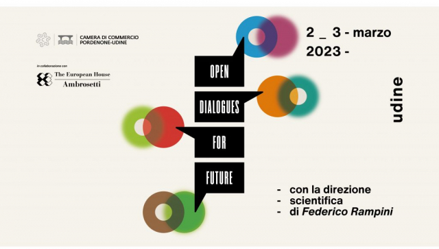 GD - Udine, 15 feb. 23 - Udine ospiterà due giornate - giovedì 2 e venerdì 3 marzo - di confronti e dibattiti con esperti, istituzioni e imprese regionali, nazionali e internazionali, tra Sala Valduga e la Chiesa di San Francesco, con il il primo "Open Dialogues For Future" dedicato alle nuove direttrici geopolitiche e geoeconomiche. L'evento è stato ideato da Cciaa Pordenone-Udine e da The European House–Ambrosetti, con la direzione scientifica del giornalista e saggista Federico Rampini, e pone il Friuli al centro del dibattito sulle strategie future.