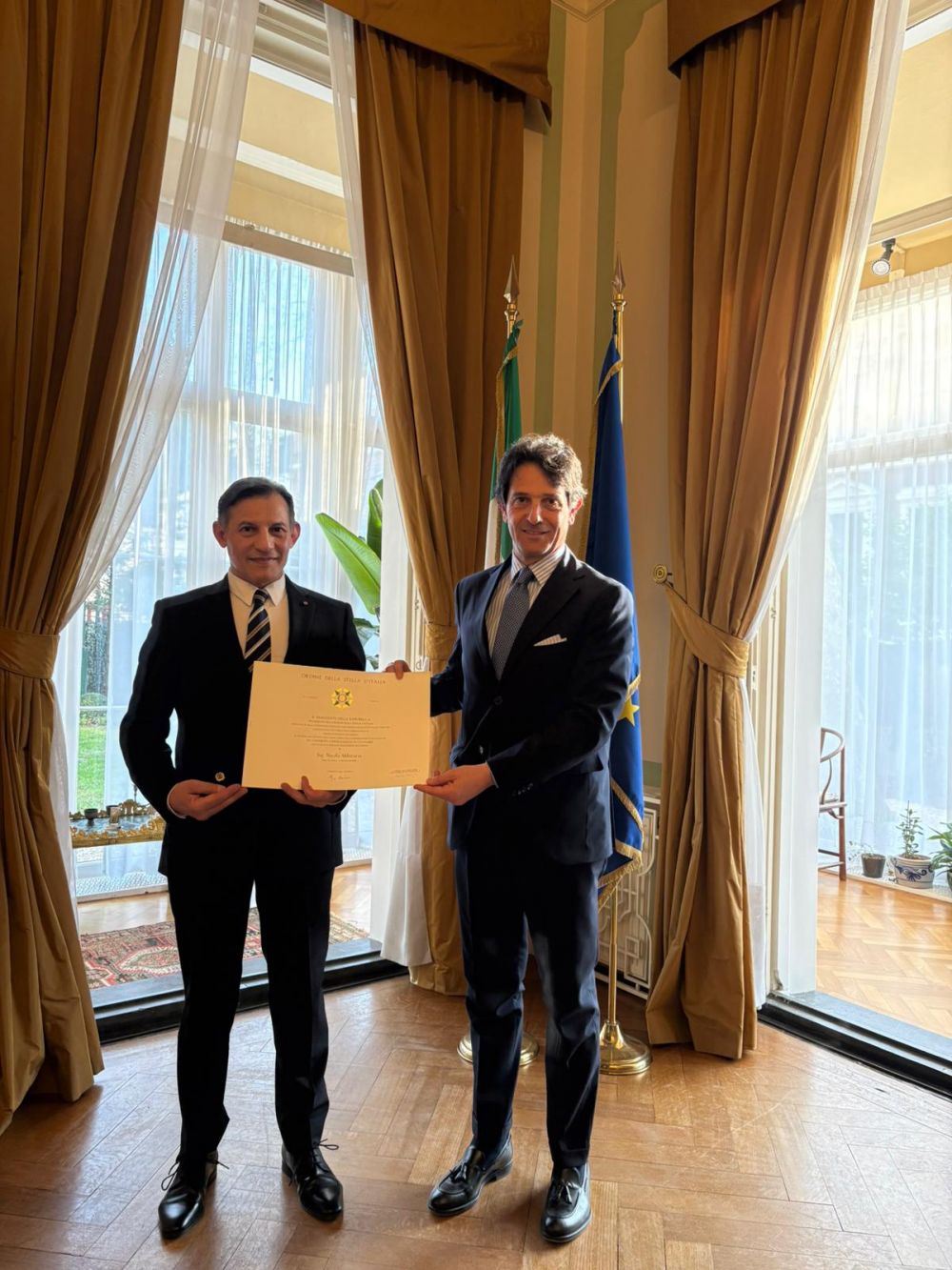 GD - L'Aja, 22 mar. 26 - A L’Aia nella Residenza dell’ambasciatore d’Italia nei Paesi Bassi, Augusto Massari, si è svolta la cerimonia di conferimento delle onorificenze dell’Ordine della Stella d’Italia (OSI).
