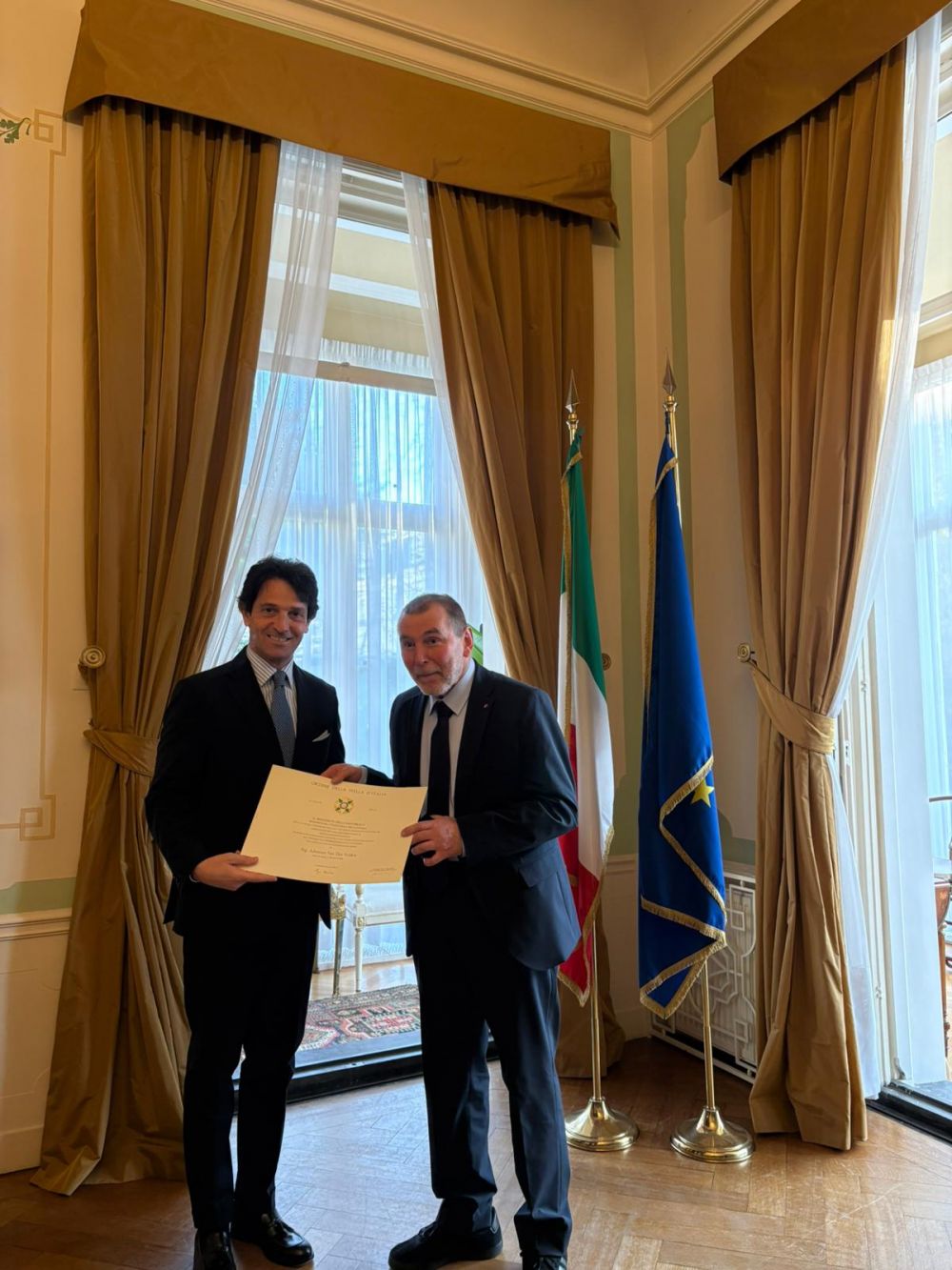 L’ambasciatore Massari ha espresso ai neo insigniti le più vive congratulazioni, sottolineando come l’impegno e la dedizione dimostrati da ciascuno di loro li rendano veri e propri “ambasciatori morali” dell’Italia nei Paesi Bassi.
