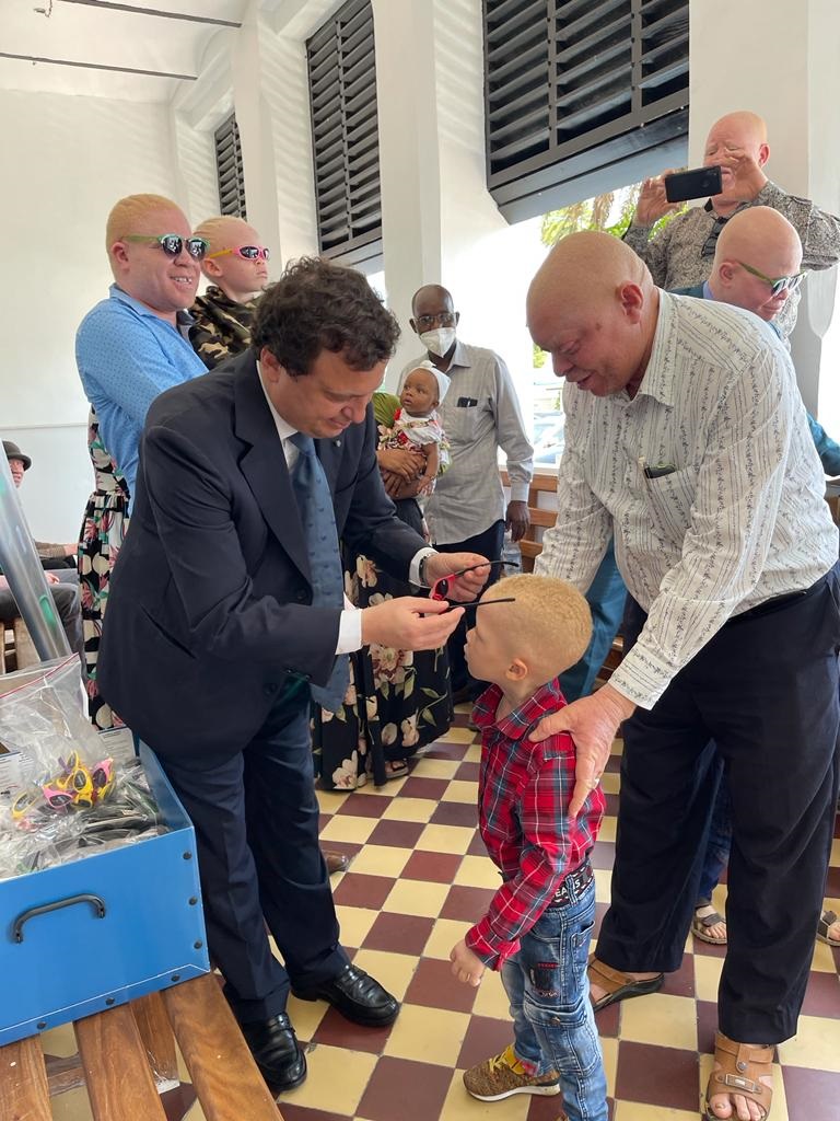 GD - Dar es Salaam, 27 gen. 22 - Nell’ambito degli importanti rapporti tra le società civili di Italia e Tanzania, l’ambasciatore italiano Marco Lombardi è intervenuto oggi alla cerimonia di consegna di occhiali e lenti per l’Associazione Albini della Tanzania da parte dell’Ottica di Mario Giordano e di Alfonso Vitiello della D’Elia Company di Torre del Greco.